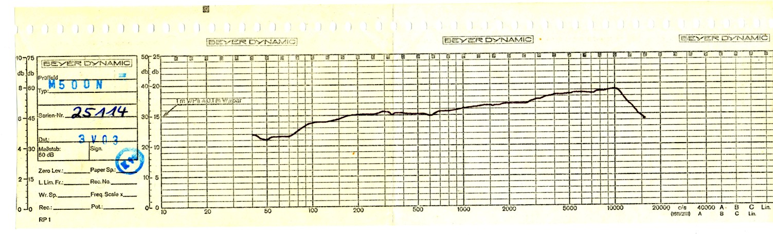 Elektrodynamický páskový mikrofon BEYERDYNAMIC M500 N výrobce EUGEN BEYER ELEKTROTECHNISCHE FABRIK GMBH & CO. . D-7100 HEILBRONN se začal vyrábět v roce 1969 a vyráběl se až do osmdesátých let minulého století. V tomto období, jako jeden z mála výrobců mikrofonů, stále zdokonaluje a vyrábí i páskové (ribbon) mikrofony, které jsou jinými výrobci téměř zapomenuty. M500 N byl vyvinut pro používání nejen ve studiu, ale i v náročných podmínkách na podiu. Má transformátor s horní propustí, který eliminuje efekt přiblížení (proximity). Výroba tohoto vyjímečného mikrofonu byla ukončena kolem r.1990. V devadesátých letech byla vyrobena ještě jedna limitovaná série nazvaná "Classic". Mikrofony, na rozdíl od černých původních, byly ve stříbrné barvě a série byla omezena na 999 ks.