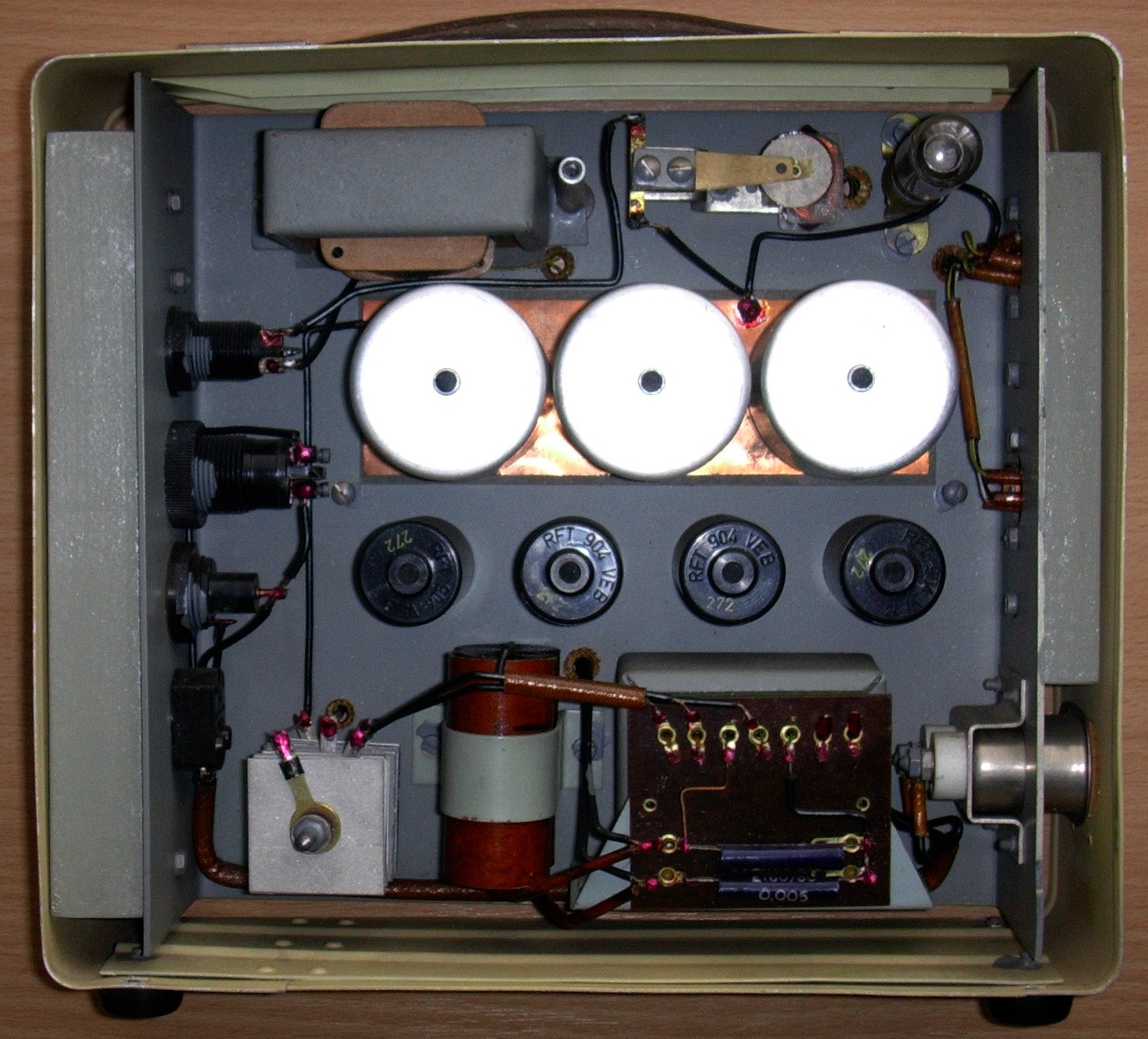 Vzhledem k tomu, že dokumentaci k tomuto zdroji se dosud nepodařilo získat, bylo toto schéma nakresleno dle přístroje. Napětí byla změřena při připojeném mikrofonu CMV5/B avometem VEB MESSTECHNIK UNI 11e.