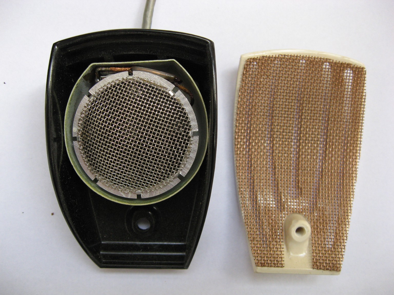 Levný plastový krystalový mikrofon. Výstup na tříkolíkovém konektoru typu DIN je nesymetrický.